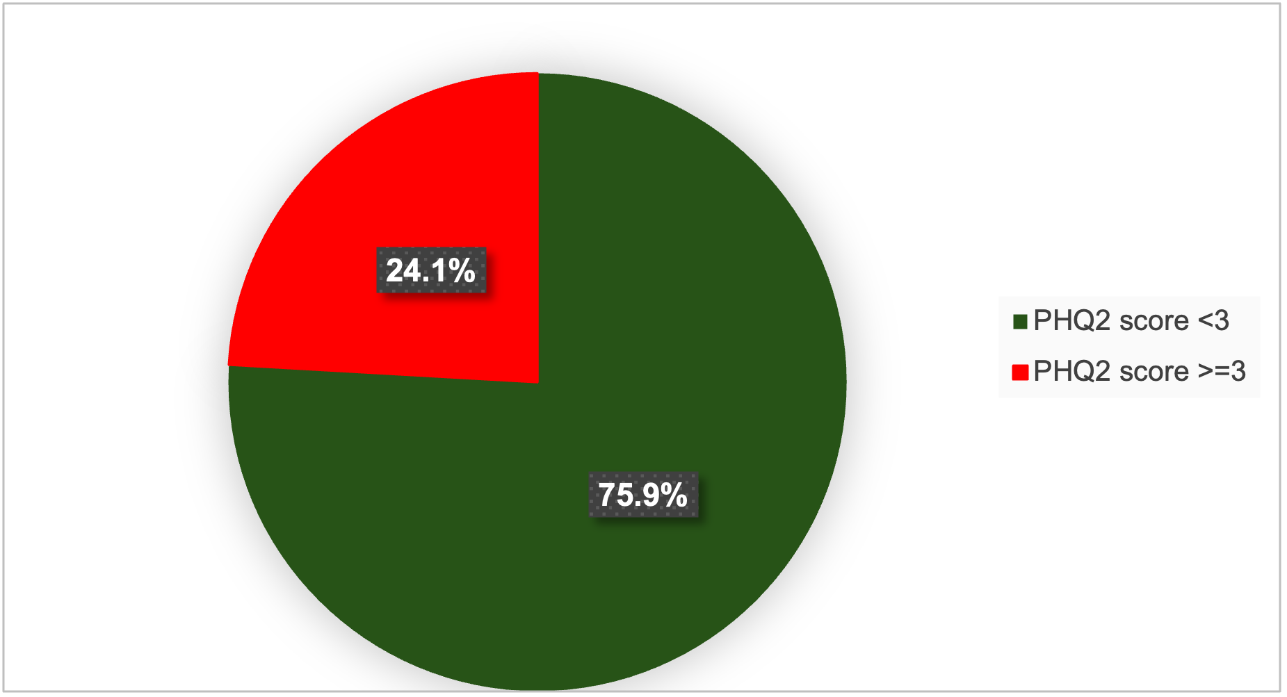 Regarding PHQ-2 scores, 24.1% of participants scored ≥3 (Figure 3), indicating a positive screening for depression (Online Supplementary Material Table S3).