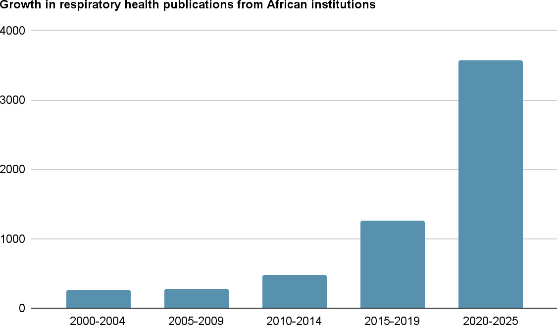 Figure 1.Growth in respiratory health publications from African institutions, 2000-2025